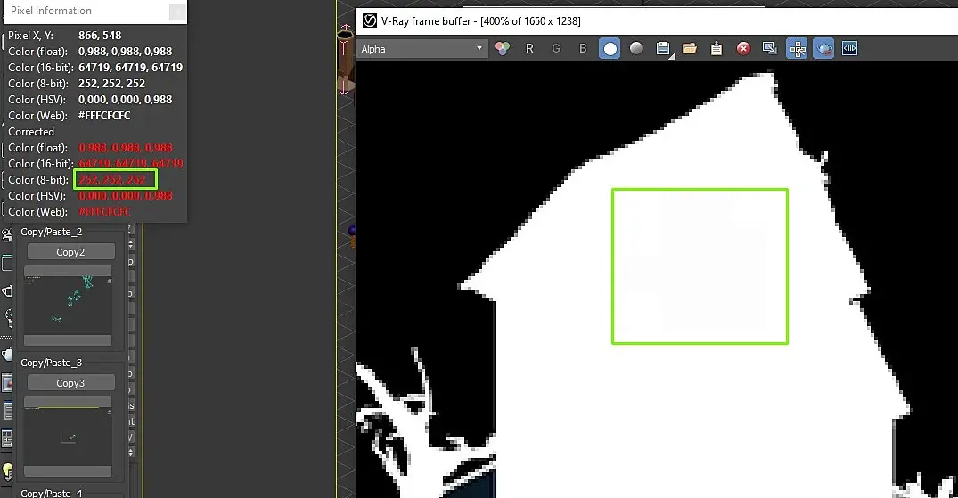 Может кто сталкивался. Уже не первый раз замечаю в максе 18 . Рендерю дом, мне нужно сохранять в пнг с альфой. Каждый раз как запускаю рендер альфа меняет свои значения, что бы добится полностью белой альфы нужно перезапускать рендер раз 10. Ну и при импорте в фотошоп картинка выходит полупрозрачная