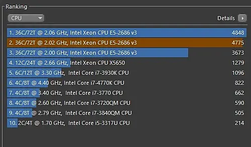 Если 105 по шине дать, то может и 36 секунд получиться, о чем есть подтверждение на офф сайте Corona.C 2017 года на первом месте https://corona-renderer.com/benchmark/results/cpu/2686 (но не стабильно, не хватает охлаждения, уходит в тротлинг).