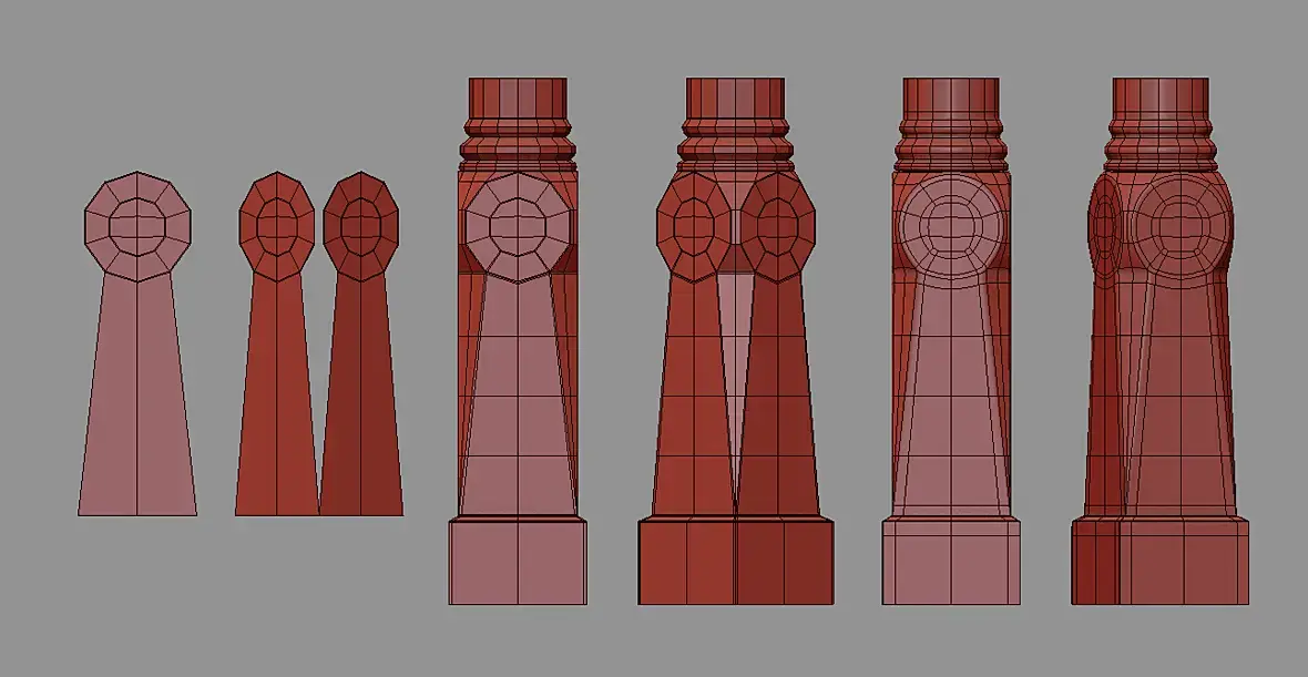 Привет. Я бы сверху еще сделала фасочку, чтобы кружочек наверху не заострялся как у тебя в последней картинке видно. и тогда симметри далее и верхнюю группу всю поверхность тоже в круг превратить. Но если у тебя не будет близких ракурсов, то и так как есть сейчас сойдет