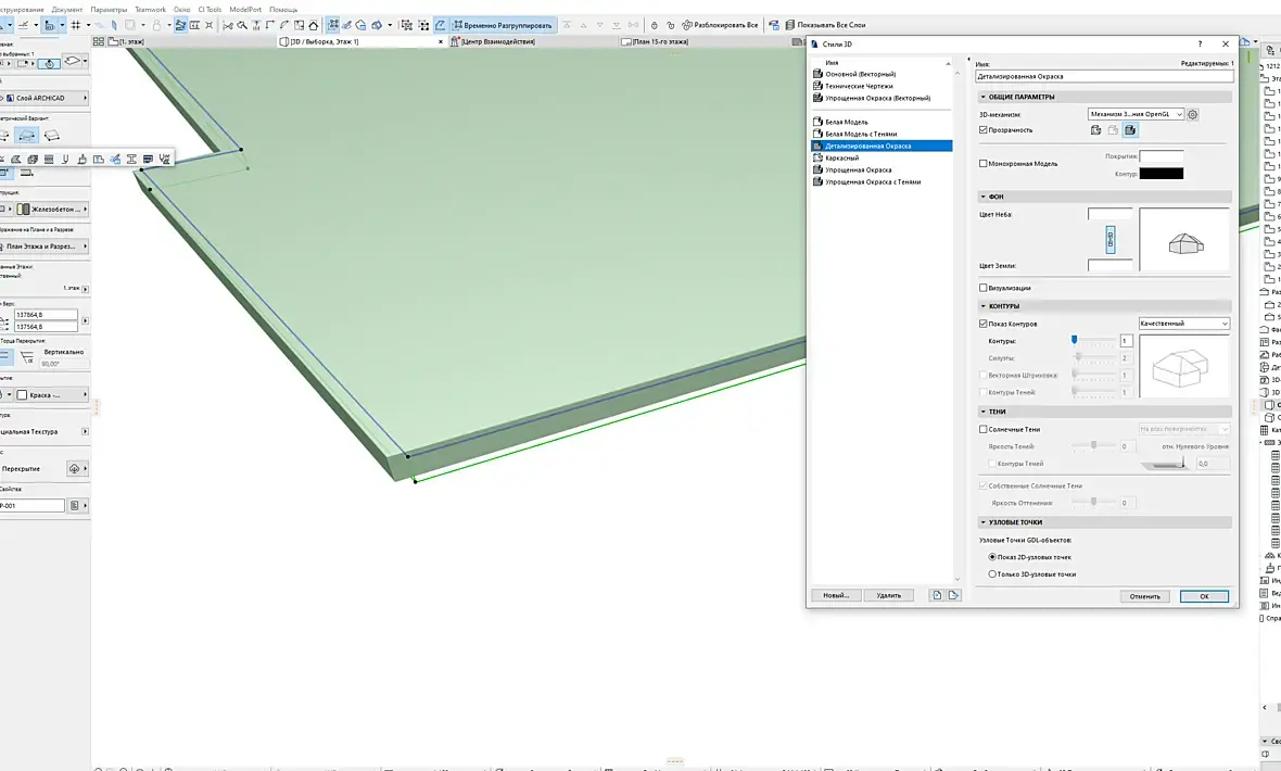 Добрый день! Кто-то сталкивался с такой проблемой. В 3д отображаются контуры нерпавиль, как на скриншоте. Если перейти в векторное отображение все работает корректно. Перекрытие одно в сцене ни с чем не пересекается. Настройки 3д отображения на скриншоте. Объединение файла с новым файлом настроенным по дефолту не помогает
