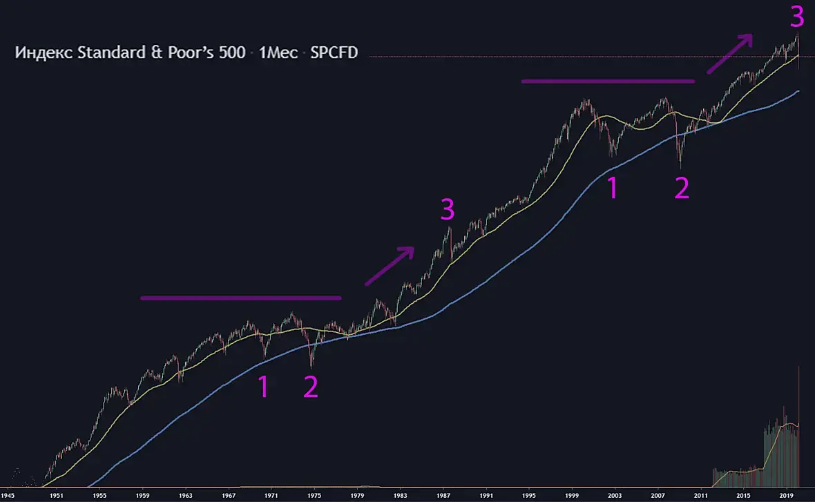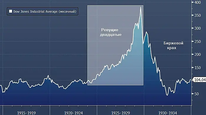 Депрессия выглядела, как биткоин, сначала параболический рост, затем падение на те же 84%. Сейчас не так.