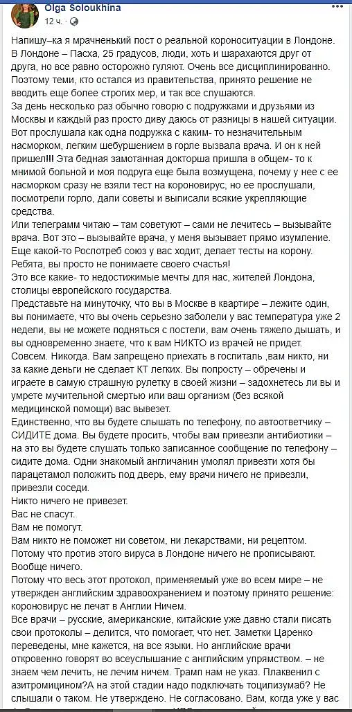 и не читайте. з.ы эта с лондона. количество заболевших пока говорит в пользу нашей медицины. количество коек и ивл тоже насчет экономики вопрос следующий и мутный)