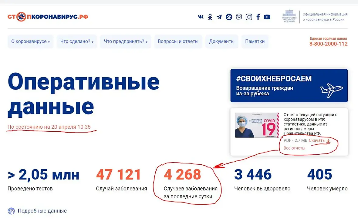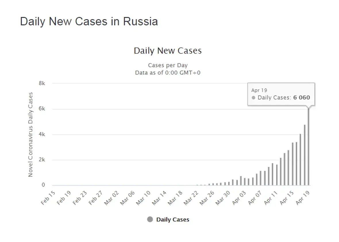 18 апреля - 4785, 19 апреля - 6060, данных за 20-е пока нет, т.к. день пока продолжается.