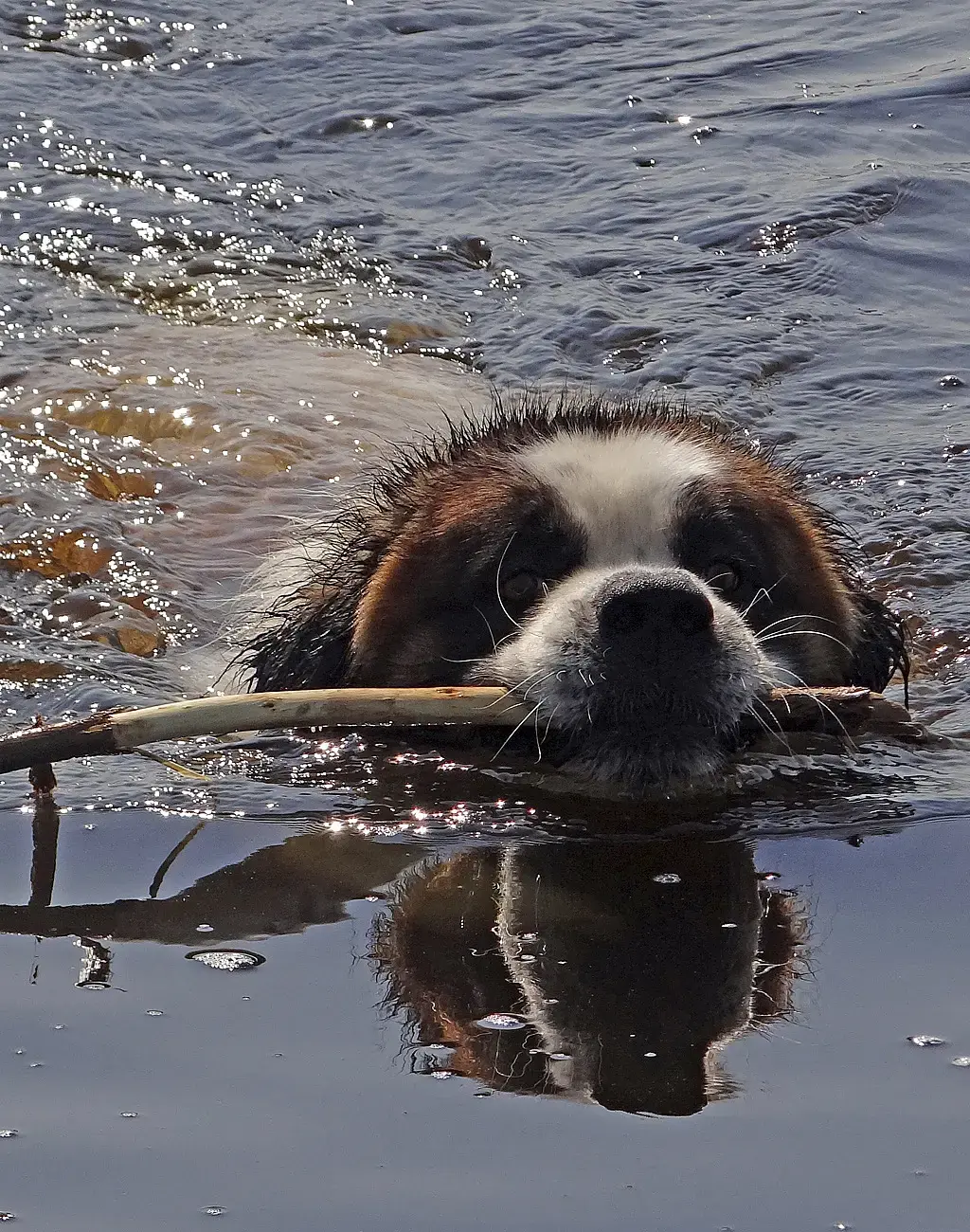 О ну мы это сейчас исправим, то был Филя, он не любит купаться, по этому и интересовался, стоит нырять или нет. А это Бакс, он любит купаться, причём даже зимой, если лёд сломать удастся.