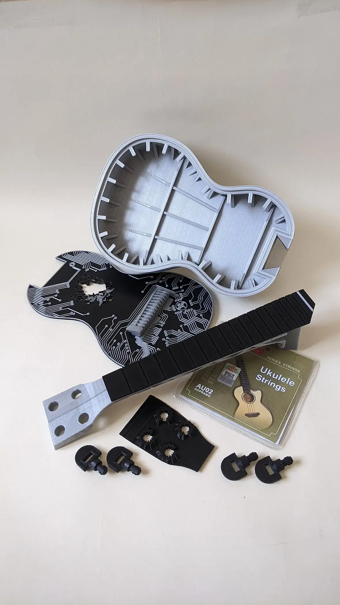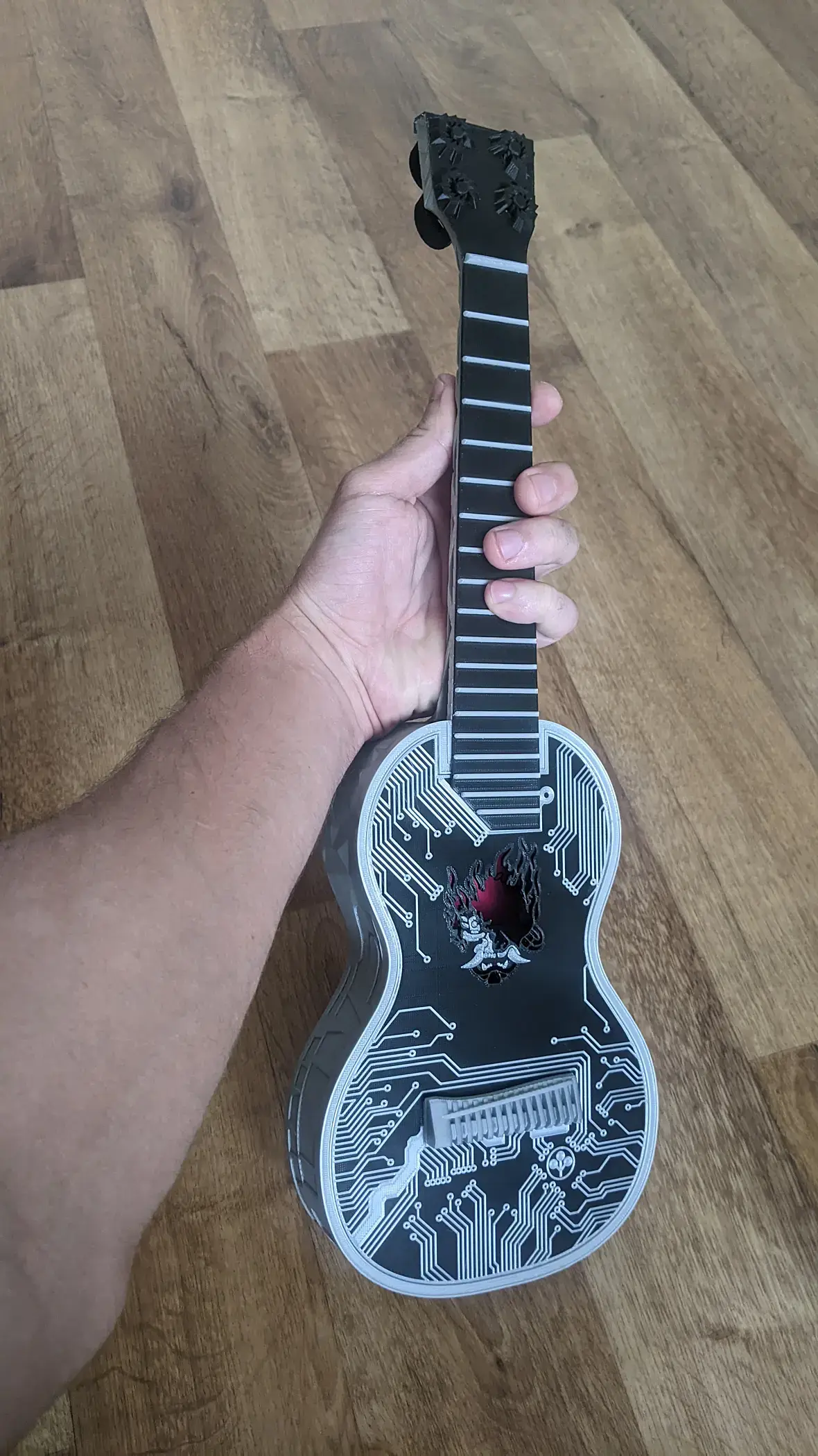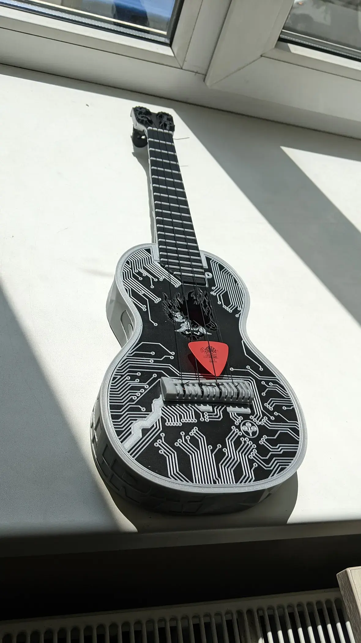 Решил себе напечатать на принтере укулеле, сделал в свободное от работы время модельку в стиле киберпанк) Звук даже удивил в какое то время, но есть много нюансов, уже на половину напечаталась версия 2.0