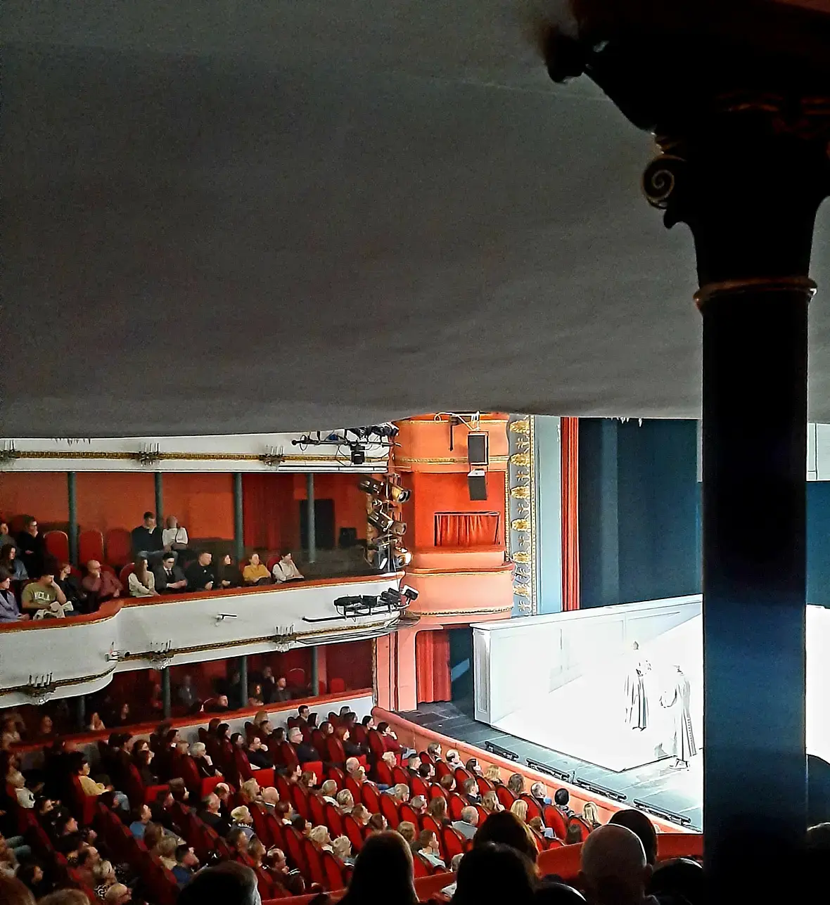 Ну что могу сказать.. таки не уверена, что театр - это моё. Розе противное, ноги в проход не влезают. Спектакль очень понравился. Но ещё больше понравилась сама картинка, все очень гармонично, подвижные дощатые элементы сцены, костюмы. Короче, я визуал настолько, что мне неважно, что на сцене происходит, если это эстетично выглядит. С другой стороны, может от настроения зависит, я ещё и опоздала на полчаса