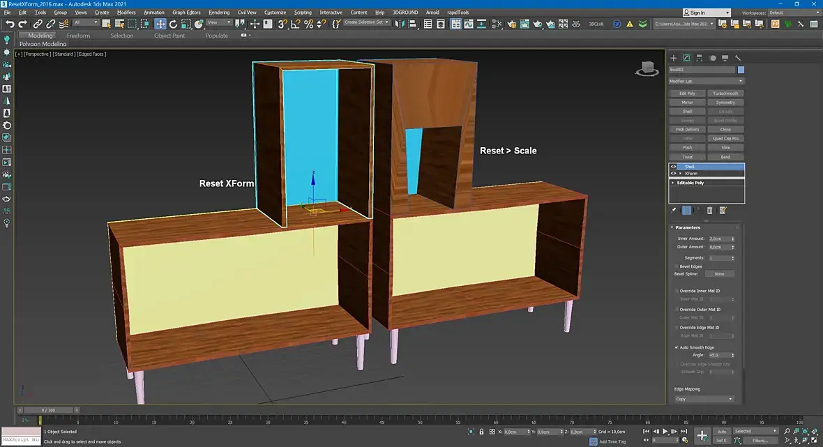 Как мне сбросить масштаб (в 3dmax) к еденичке стобы после конвертации получилось как на рисунке: