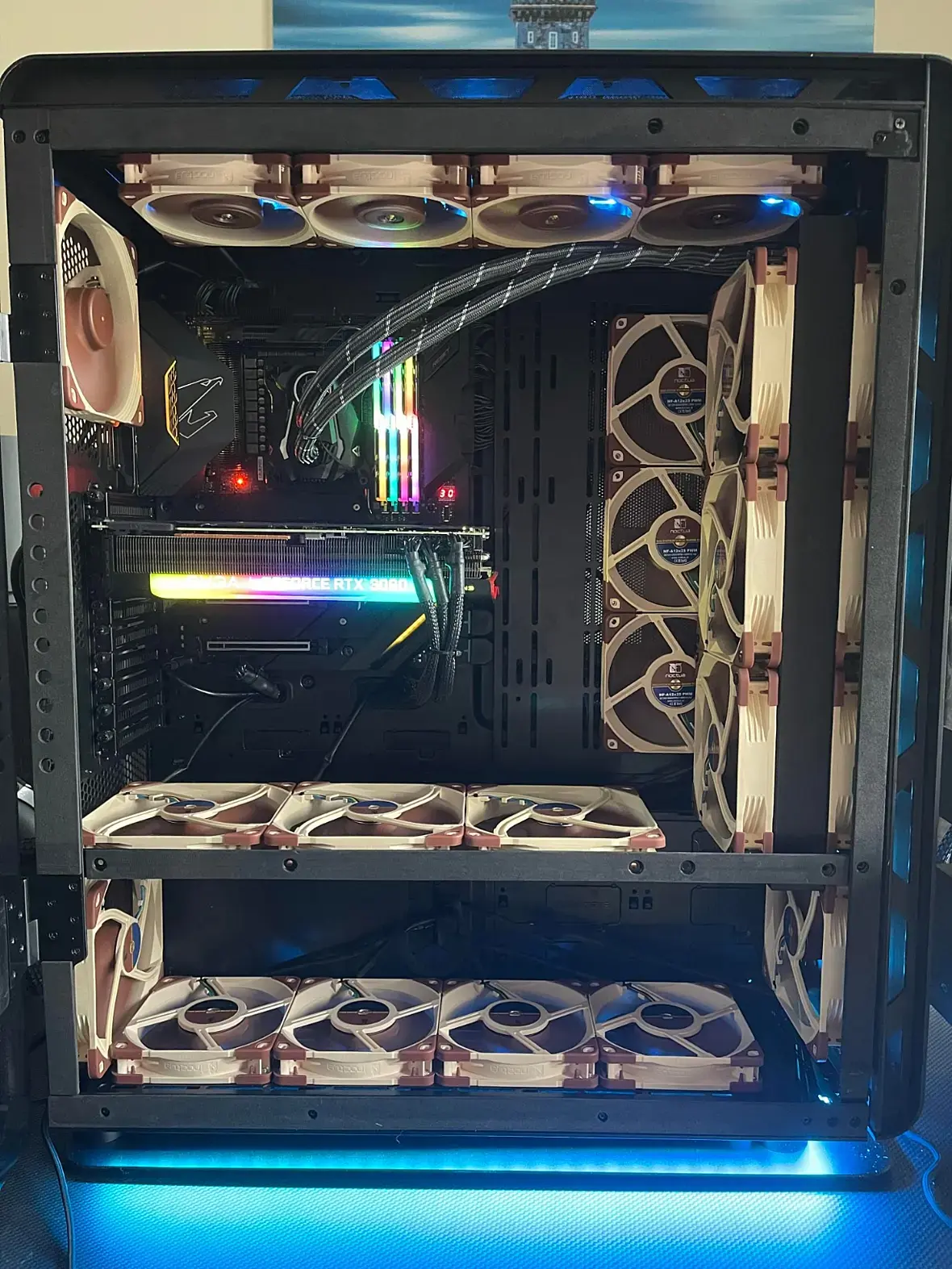 traf - Благодарю =) Я свой зеленый год собирал, железки не рядовые по цене, поэтому процесс сборки растянулся, система успела 3 корпуса сменить +) Кое что так и не смог реализовать, банально из-за карантина. Нет в наличии, закрыто и так далее. В планах совсем мелкие эксперименты - водянка готовая, хочу пассивный радиатор поставить на видяху, вначале хотел Quadro RTX4000, но она не пролезает из-за вентилятора, и то я ее брать хотел из-за цвета )полоски зеленой, пока решил так оставить. А вам желаю, чтобы хобби стало реальностью =) У меня это и правда как хобби, я и себя не считаю никому конкурентом, т.к собираю редко, и берусь если проект мне чем -то интересен.
