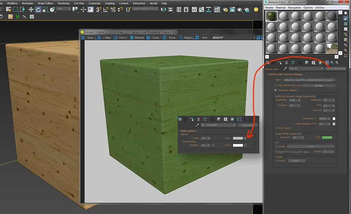 Привет. Подскажите какой-нибудь урок как сделать реалистичный материал крашенной деревянной доски, с возможностью менять цвет этой краски на любой по своему усмотрению? Как сделать такой материал в короне.