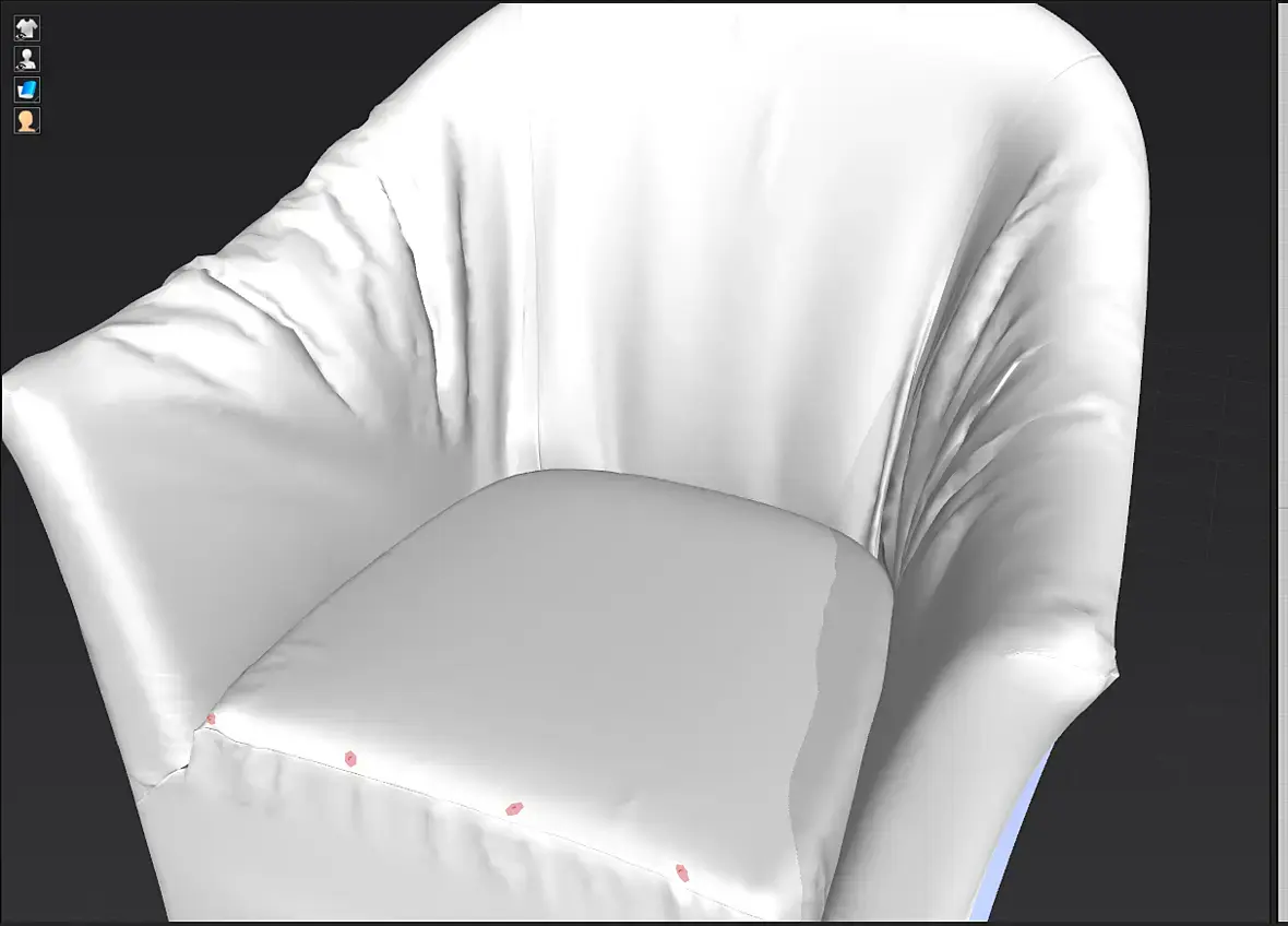 Думаю есть ошибка в выкройке. К примеру на рефе много складок на подлокотниках, а так же в верхней части спинки (особенно видно в тряпке), на модели этого нет.