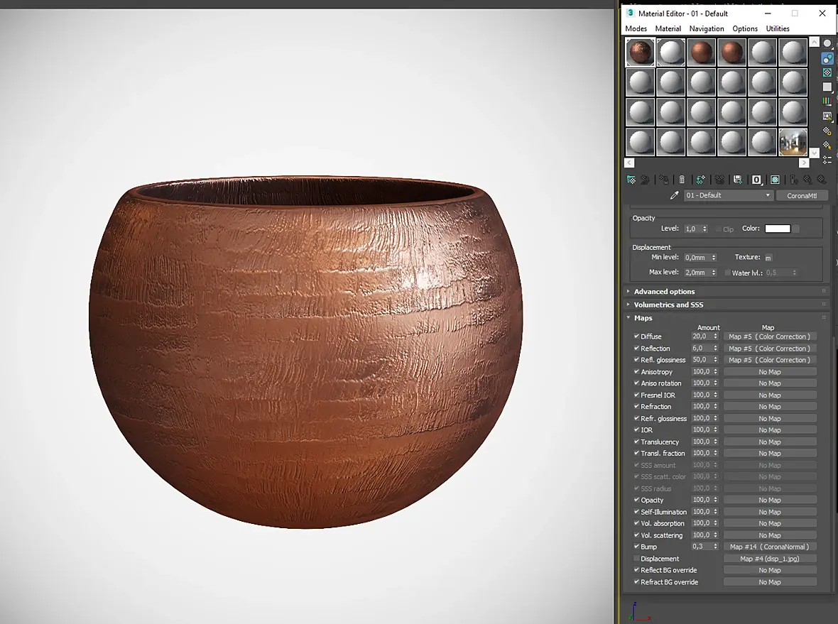 Саму вазу с помощью модификатора lathe, а неровности ЧБ картой или нормалью