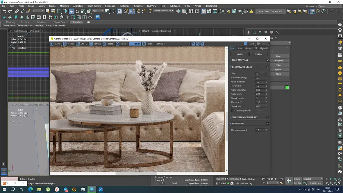 3ds max 2023+ Corona 9. Стали вдруг мыльные рендеры все, на всех камерах, не знаю что делать. До этого все нормально было. Выкручивая в пост обработке резкость, становиться лучше, но все равно это не то. И в других сценах все одинаково стало мыльно
