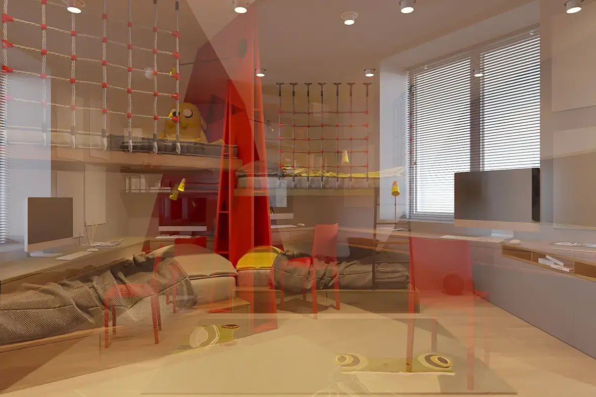 на рендере совмещается два ракурса