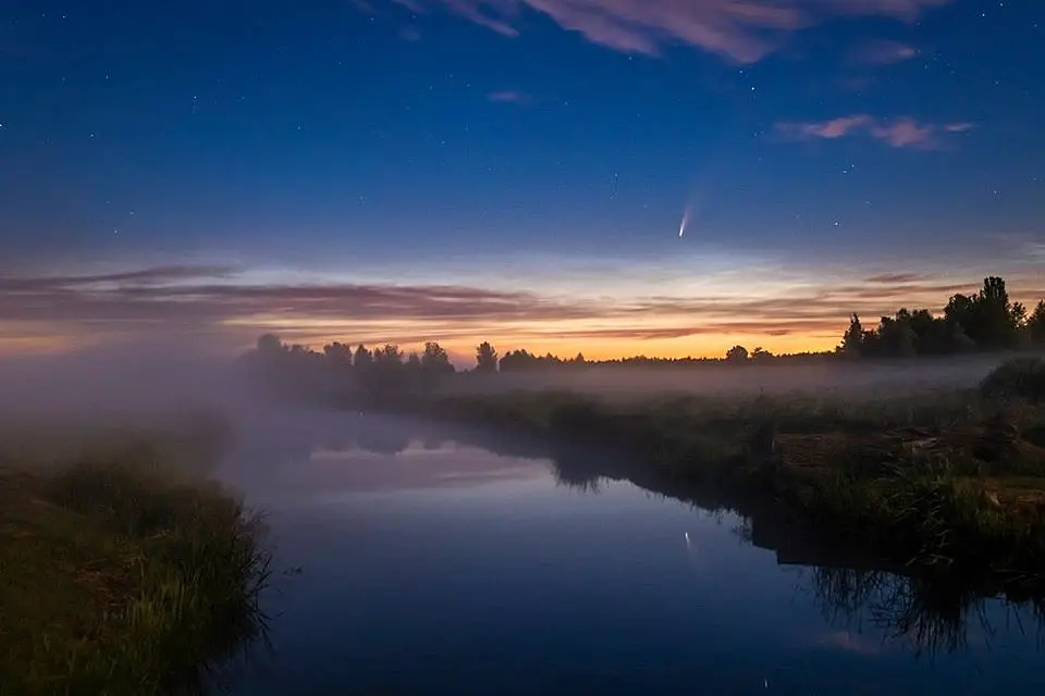 Есть такой фотограф Антон Петрусь. Он уже отснял целую серию с этой кометой. Вначале просто снимал ночные пейзажи с кометой, потом пошли постановки все с той же кометой. ))) Человек творческий, да еще и с шикарной техникой, не мог пройти мимо такого редкого явления. Фото сделаны возле Барышевки под Киевом
