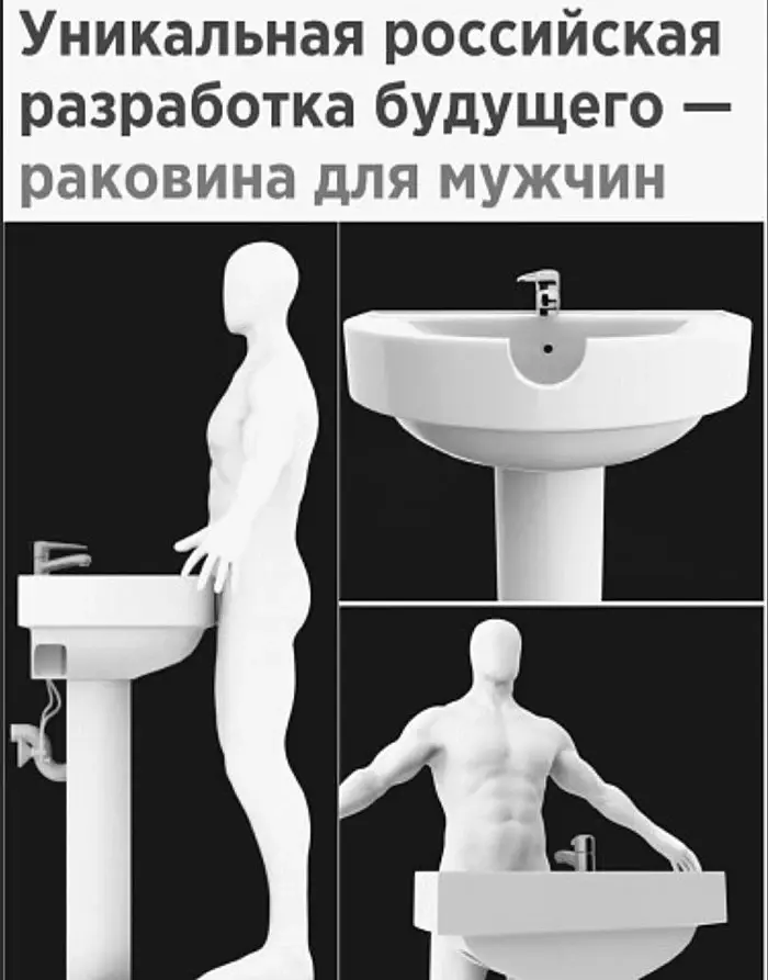 Судя по тому как чувак руки растопырил, эта раковина ещё и стряхивать умеет. )