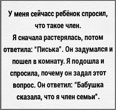 Живет мужик, холостяк, всё никак не женится.Все его уговаривают:- Вот только представь себе: останешься в старости совсем один, будешь умирать, захочешь попить - и даже воды подать некому.Подумал мужик, подумал и женился, обзавелся семьей. Детей нарожал, внуки пошли. Прошли годы.И вот настал час, и лежит он, и умирает. А вокруг дети собрались, жена плачет, внуки бегают.А он лежит и думает:- А пить-то совсем не хочется...