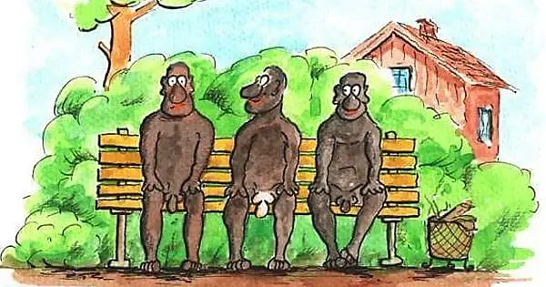 На картине были изображены трое полностью обнаженных чернокожих мужчин, сидящих на скамейке.