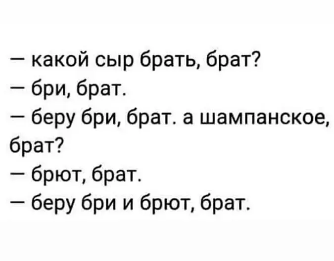 Городской интеллигент в сельпо: - Скажите, у вас в продаже сыр Дор Блю имеется? - А что это? - Ну, сыр с плесенью. - А, понятно. Сыра нет, но вот, можете взять хлебушек Дор Блю, колбаску Дор Блю.