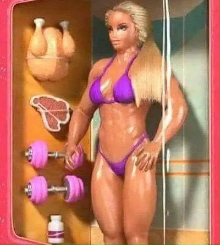 Тут же производитель куклы хотел сделать доброе дело, вызвав условный рефлекс у постящихся малолеток: "красивое здоровое тело = хорошая протеиновая еда + спорт".