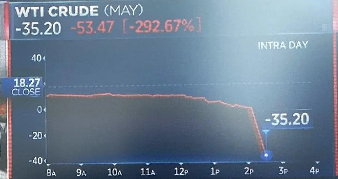 Мир сошел с ума. Цена барреля нефти -35.20$.