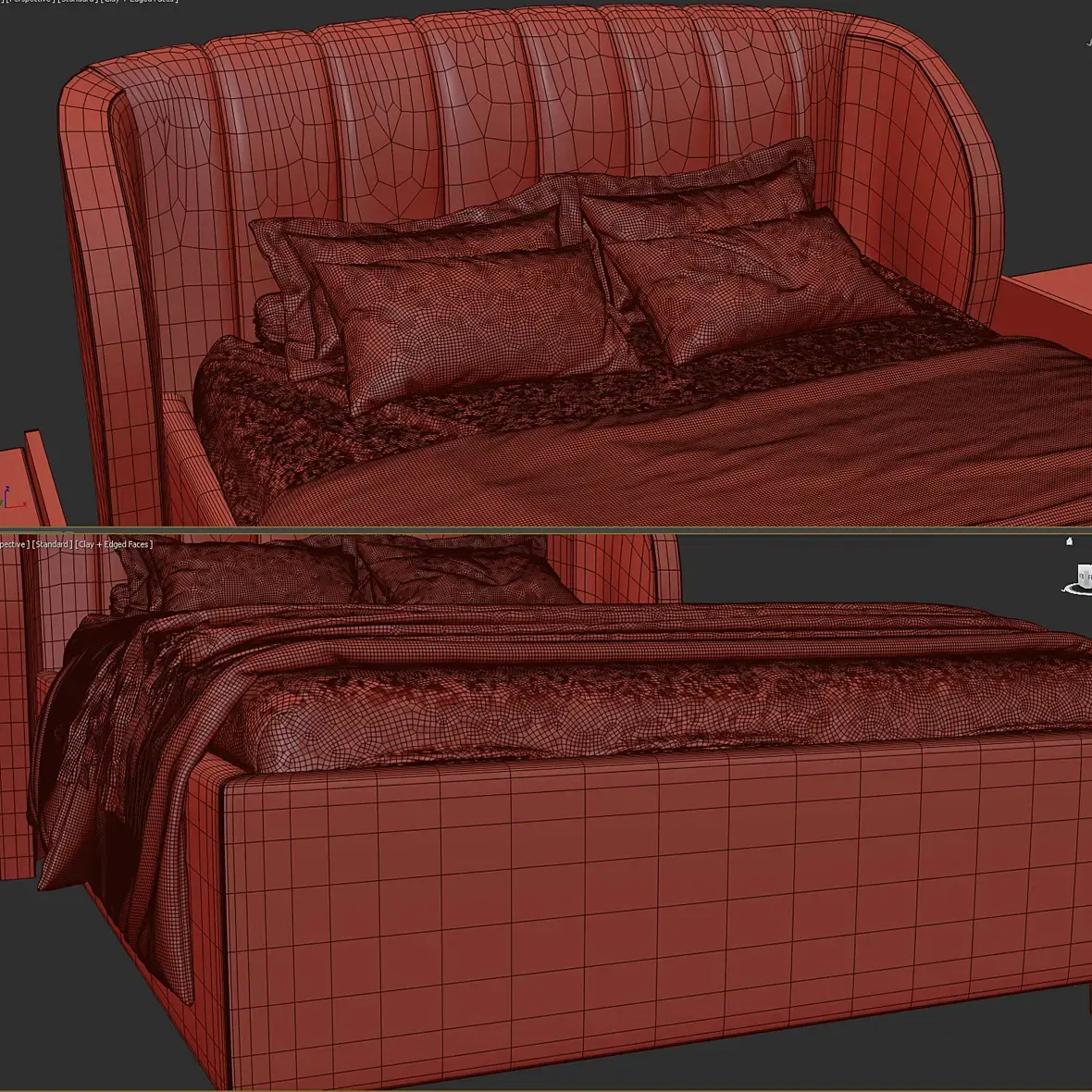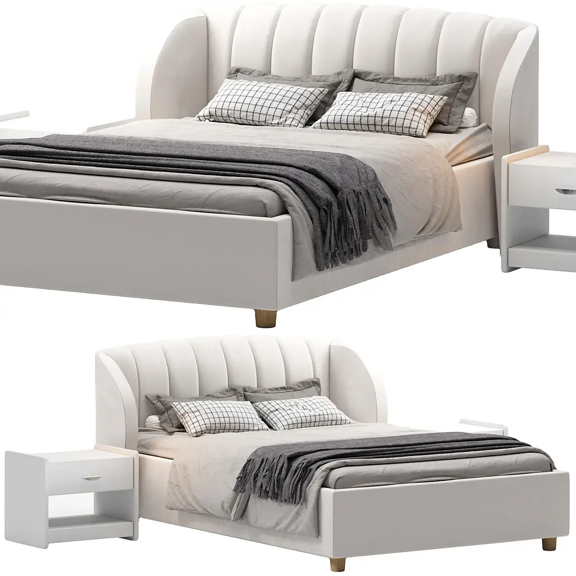 Поверхность тумбочек сливается с фоном из-за пересвета, материал спинки и основания фронтально не читается, может такая же модель есть в базе и одна представлена лучше