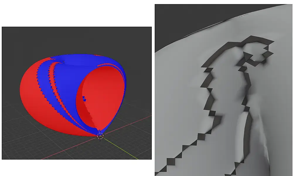 Всё, что показано красным - вывернутые нормали, из-за чего при сглаживании получается вот такая картинка: