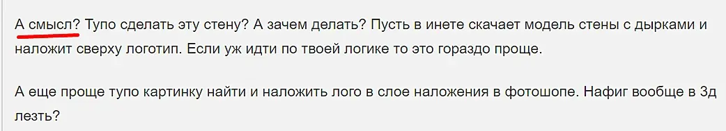 А смысл? Тупо сделать эту стену? А зачем делать? Пусть в инете скачает модель стены с дырками и наложит сверху логотип. Если уж идти по твоей логике то это гораздо проще.