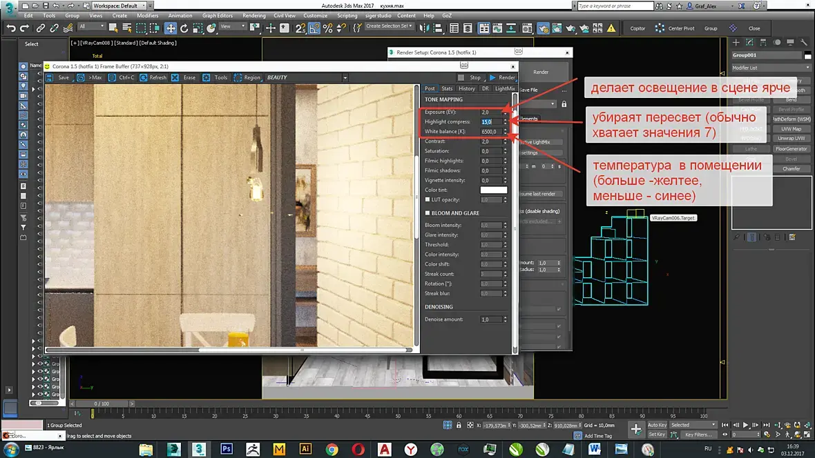 привет,ребята у меня вечно неправильно освещается комната,очень мало света.использую корона рендер,с hdr картой.могу показать работу правда недоделнная еще.да и если я усиливаю hdr то взрыв на окне