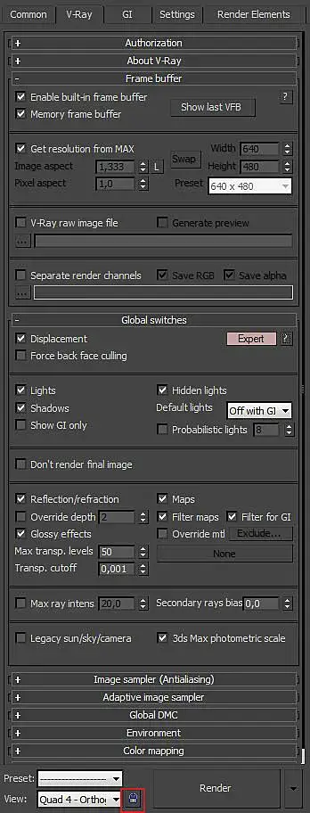 В Render Setup во View поставьте вьюпорт с камерой и замок залочьте.