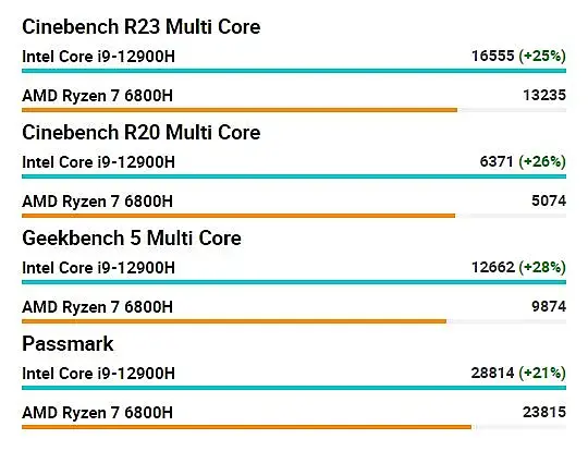 Потому что у этого ноутбука лимит 70 ватт на процессоре и он работает на уровне 12500H в Lenovo legion 5.