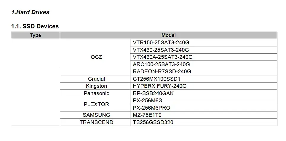На сайте Asus есть инфа о совместимых SSD вот в таком виде: