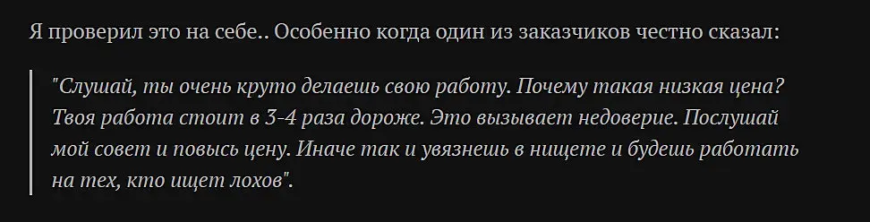 Для теоретиков, рассуждающих о том, что легко можно выторговать с клиента приличные деньги, рекомендую зарегиться на любом фриланс ресурсе и попробовать это сделать на практике. Будет любопытно узнать о результатах )