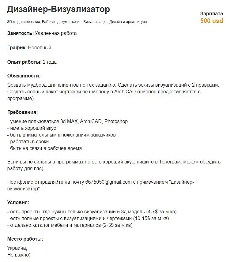 Нормальный вариант для ооооочень начинающего дизайнера)) но такой не потянет даже половину из перечисленного, а опытный за хлеб вряд ли будет работать, так что непонятно для кого вакансия