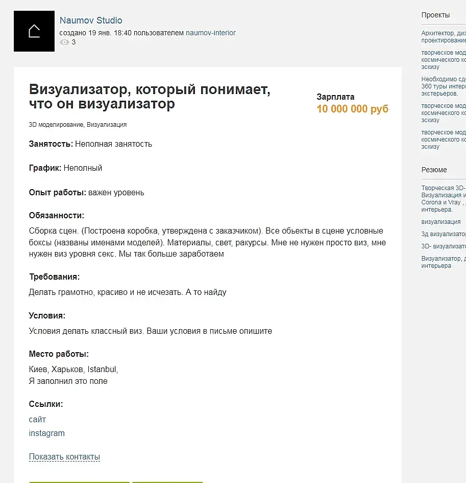Хочу пригласить принять участие в проекте по моделированию современной и стильной обуви Российско - Итальянского производителя. Ищу опытного 3D модельера на участие в долгосрочном проекте. Проект будет достаточно знаковые на Российском рынке. Современный, с PR поддержкой после запуска на рынке. Возможностью сделать себе имя и портфолио.