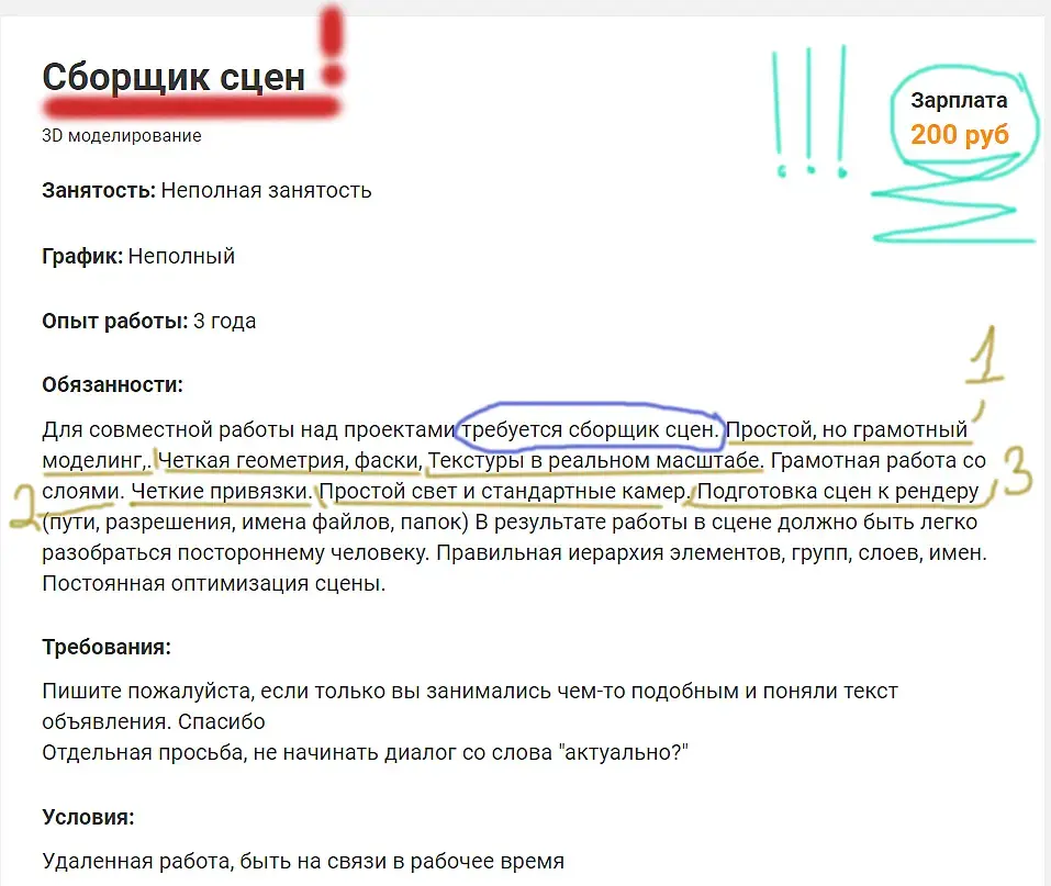 Самое забавное что в вышеописанных вакансиях нужно еще и камеру, и свет выставить. Но ты все еще сборщик сцен. Откуда такое отношение, неужели кто то впишется на такое?