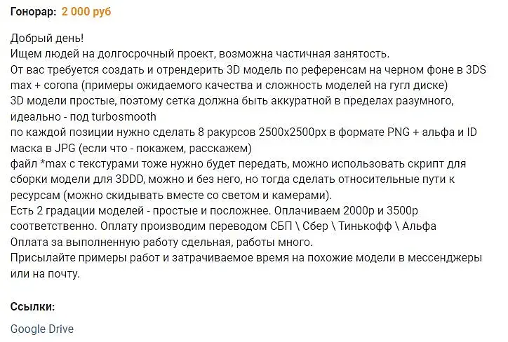 Я как-то решил побыть со стороны заказчика на рендер ''Условного ЖК''. Цены от 250 до 700k в студиях. Цены вполне рыночные, и зп можно выделить реально 200. Если себе не оставлять 80 а исполнителю или 20 или *** на обед и завтрак.