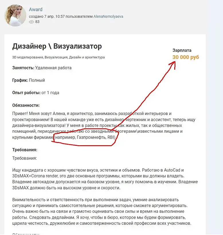 Ну а теперь попробуем найти в селе человека с высшим образованием, чувством вкуса, эстетики и объемов, с хорошими навыками Автокада и 3д Макса, который внимательный, ответственный аналитик и совершенно не хочет жить в Москве с 120.000+ рублей ЗП, а его прям совсем устраивает его Мухосранск за 20.000-30.000