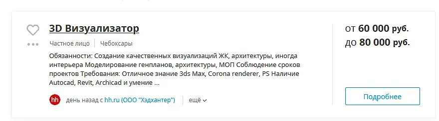 И только начинающий визуализатор из Чебоксар считает, что ему сразу должны насыпать денег, как в Москве, а если решит поработать с американской компанией, то меньше $10 тыс будет считать оскорблением.