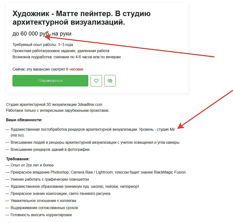 предложение жёсткое. Опыт 3 года, три года! Да зп тут явно низкая именно от "не полной занятости", но... если чувака 3 года опыта, владение максом да ещё и архикадом, в МСК. Как, Карл, он согласится с 3 летним опытом на 20-ку. Даже, если ему нужна куча свободного времени, он 20-ку закроет одним простым проектом или средним от 40-ка сразу закроет себе 2-3 месяца...