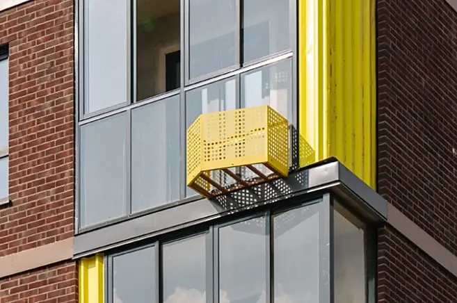 Непонятно, как эти практиканты предлагают сюда кондей вешать? На чём вообще держится корзина, как подвести трассы... А стеклянный низ у балконов это по итогу ужасный мусорный фасад всего дома.