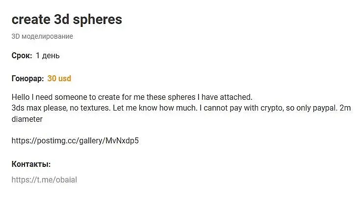 я разок так же откликнулся ради опыта) Просто сделать среднего качества виз маленькой кухни, все модели есть, вся инфа собрана. Ну думаю за денёк бахну, обещали аж целых 4к! В итоге от модели кухоного гарнитура осталась не тронута раковина и духовка, все шкафы пришлось перемоделивать, было кучу раз заменены текстуры подушек, стульев, и т.д. затянулось все удовольствие недели на три, с бесконечными согласованиями переделками, тестами. В течении работы от этого же дизайера пришла еще задача, уже квартира целиком, 45кв аж по 300р за квадрат мне цену озвучили. Таже канетель, месяц гемороя. В итоге мне стало не интересно, я начал отвлекаться на другие более жирные проекты, и под конец тётя при переводе оплаты решила 5к себе оставить с формулировкой, что у меня в портфеле работы круче, а то что я ей выдал, по ее мнению, можно было лучше! За 300р на минуточку!) Короче ну нехер, я столько времени на этом сжег, лучше б сериалу с женой посмотрел.