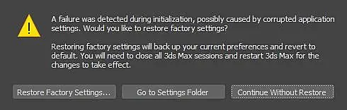 Стала появляться регулярно-рандомно при открытии файлов на двух разных компах. На камне этом написано, что стряслась беда, некие басурмане али супостаты али чума напала и поразила настройки нашего православного 3д максушки и путей дороженек у нас теперь три как всегда: На право пойдешь может все заработает по старому, на лево пойдешь обнулится твой интерфейсушка, а прямо пойдешь... в общем прямо я пока не ходил, дабы своими "прямыми" ручками там делов не наворотить.