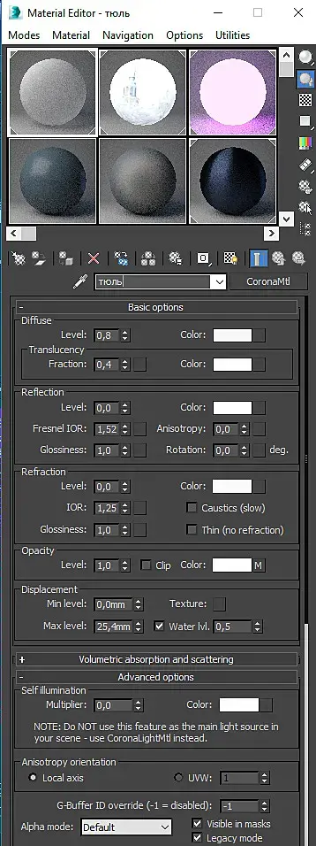 со штор убрать всю прозрачность, тюль - материал настройки сюда скрином
