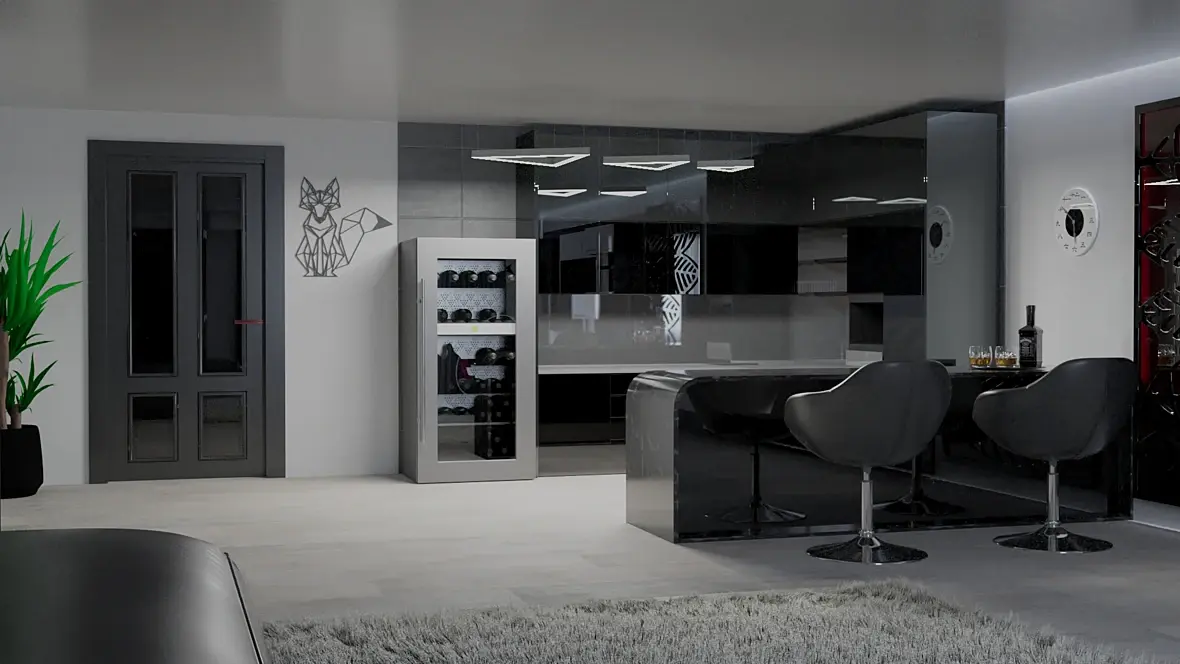 В первую очередь поработайте со светом , очень тускло и неинтересно . Переключайтесь в сер мат и крутите освещение . После вас ждет удивительный мир настройки материалов , углубляйтесь в него , шерстите туторы , крутите ползунки и познавайте волшебство . По дизайну разжевывать ничего не буду т.к. на вкус все фломастеры разные но , как по мне очень спорно .