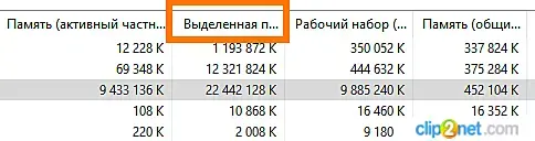 Nick_pan, вы смотрите на Активную память (Active Working Set) но не на Занятую процессом (Commit Size). Не знаю как там на Русской локализации винды, но на Английской - Commit Size столбец добавляете и по нему и ориентируетесь.