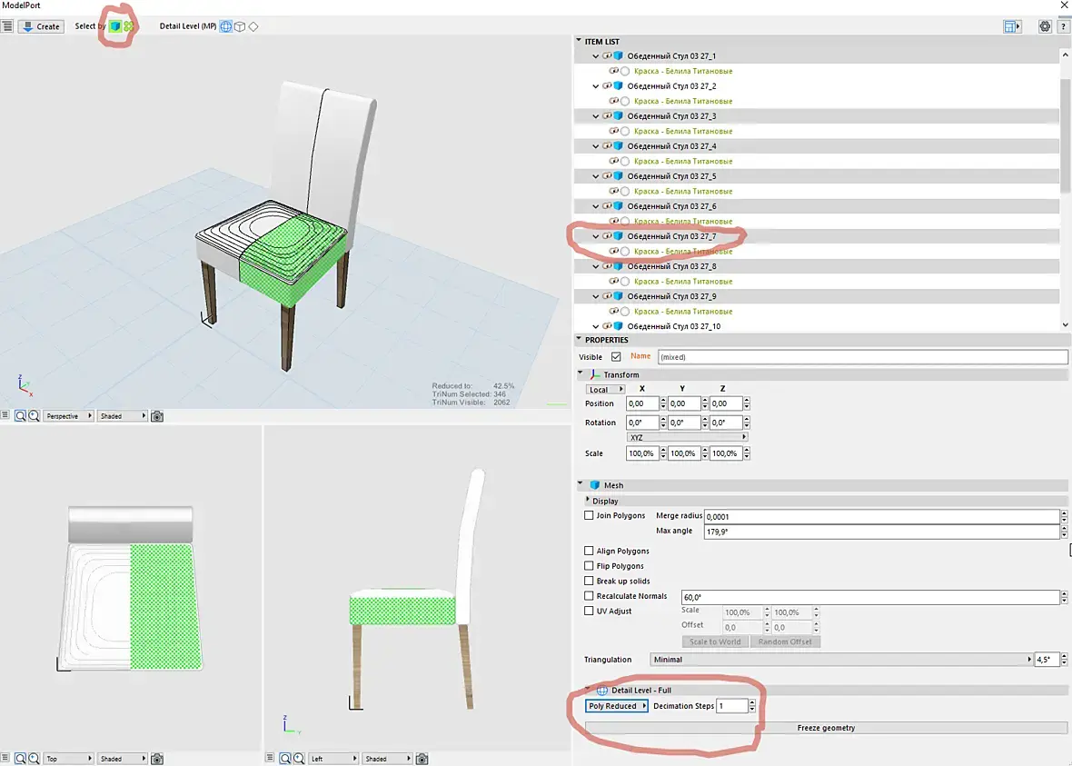 слегка отстала от жизни в Архикаде, потому что вынуждена работать в другой программе, пока меня не было, у Архикада появился Моделпорт (прекрасное изобретение человечества, надо сказать). В связи с этим есть вопрос - сейчас куча производителей предоставляют 3д модели, как правило дерьмового качества, но для архикада в целом сойдут, проблема в том что "как есть" их в модел порт запихнуть не удается, они в нем отображаются сеткой, а не контуром, если отображение ребер отключить в настройках, то модель на развертках заливается назначенным цветом, а контуры исчезают. Пример модели от производителя в приложении. Перемоделивать по-человечески смысла нет никакого. Я пошаманила в 3д максе, конвертнув модель в фбх (оригинал obj), в итоге вроде все получилось, модел порт сожрал, отобразив все как надо без плясок с бубном, но сетка сего творения все равно вызывает внутреннее содрогание. Есть подозрение, что если подобное скормить архикаду в достаточном количестве он начнет крашится и тормозить. Может есть какие-то простые пути ретопологии в Максе, чтобы подобные модели конвертировать во что-то более удобоваримое и заодно облегчать для последующего использования в Архикад? Буду признательна за идеи и подсказки.