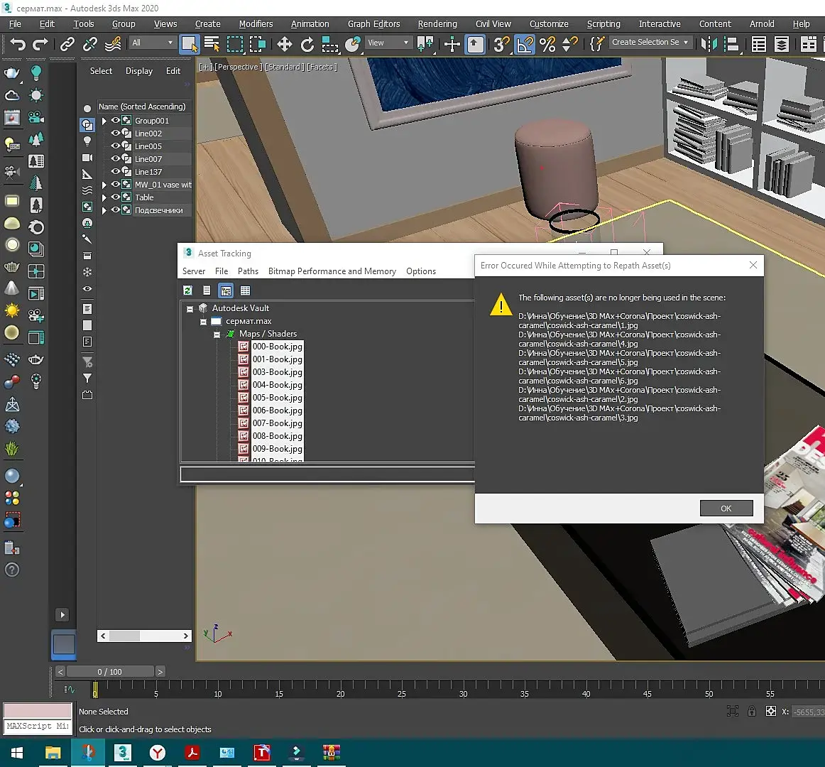 Добрый день, необходимо перенести сцену на другой компьютер. Сбрасываю пути к материалам, (чтобы правильно сделать архив) через assets tracking. Выдает такую ошибку и не сбрасывает пути к файлам.