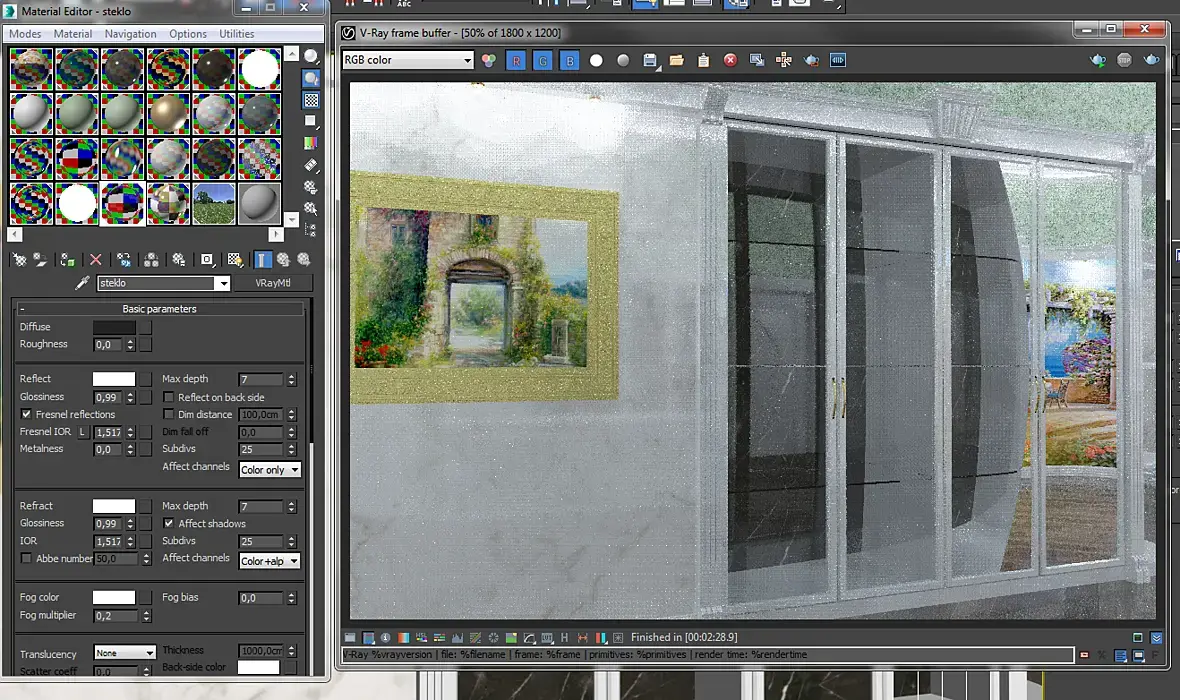 Всем привет! Столкнулся с такой проблемой... Не корректно работает отражение на стекле. Под прямым углом отражение пропадает, чем больше угол, тем больше отражения... Френель будто некорректно работает Help пожалуйста!!!
