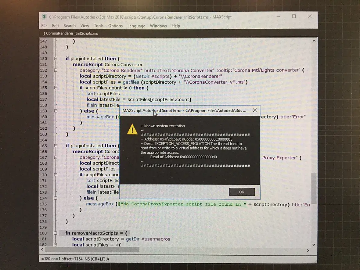 "вдруг" при старте макса 2017 с короной стало вылезать сообщение об ошибке скрипта CoronaRenderer_InitScripts.ms
