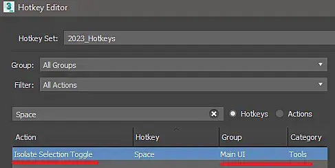 likkeries, у меня в 2017 и 2020 Максе она так и называется Isolate Selection Toggle. Одной и той же кнопкой выделенные объекты входят в режим изоляции и та же кнопка выходит с этого режима. Не знаю чем тут помочь. Впервые слышу что бы этот режим не работал.